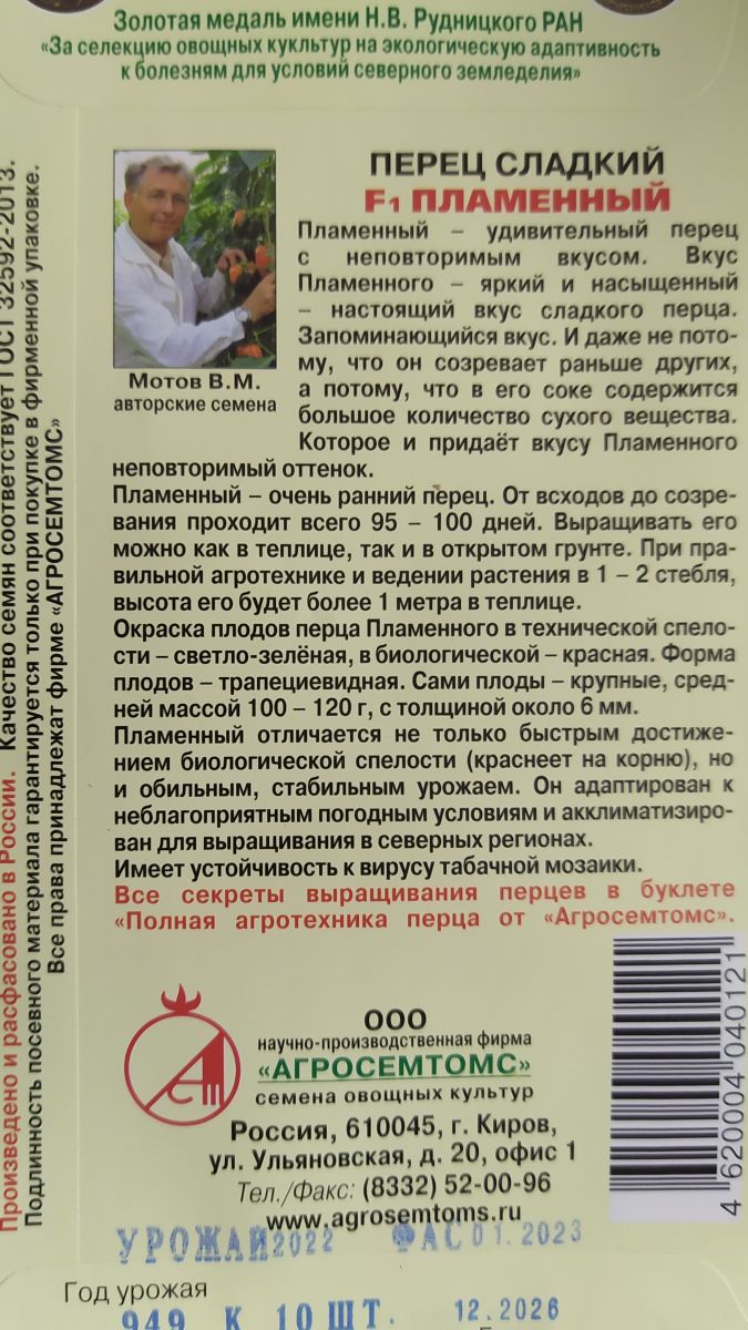 Ранний (95-110 дней), высокоурожайный для выращивания в теплицах и открытом грунте. Плоды крупные, трапециевидной формы, сочные, толстостенные (до 6 мм), окраска в технической спелости светло-зеленая, в биологической – красная. Средняя масса плода – 100 -120 г. Быстро достигает биологической спелости (краснеет на корню). Плоды отличаются высоким содержанием сухого вещества, витамина С и сахаров, имеют великолепный нежный вкус. Устойчив к ВТМ.