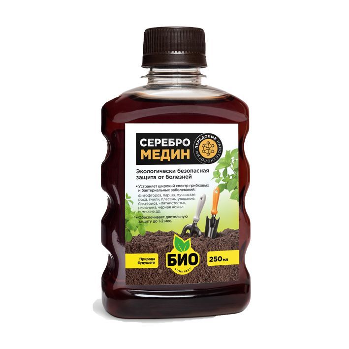 Высокоэффективное экологически безопасное средство по устранению грибковых и бактериальных заболеваний для всех видов культур. Состав: вода, натрия лауретсульфат, наночастицы серебра, наночастицы меди Свойства: • Устраняет заболевания: фитофтороз, парша, мучнистая роса, гнили, плесень, увядание, бактериоз, «пятнистость», ржавчина, черная ножка и многие др. • Обеспечивает длительную защиту за счет формирования бактерицидного слоя наночастиц на поверхности растения, которая не смывается мелким дождем и при поливе. • Обеззараживает семена перед посевом и при хранении. • Принцип действия основан на природном механизме защиты растений от патогенной микрофлоры. • Полностью экологичен и безопасен для растений и человека, не загрязняет почву. ВОЗМОЖЕН ЕСТЕСТВЕННЫЙ ОСАДОК.
